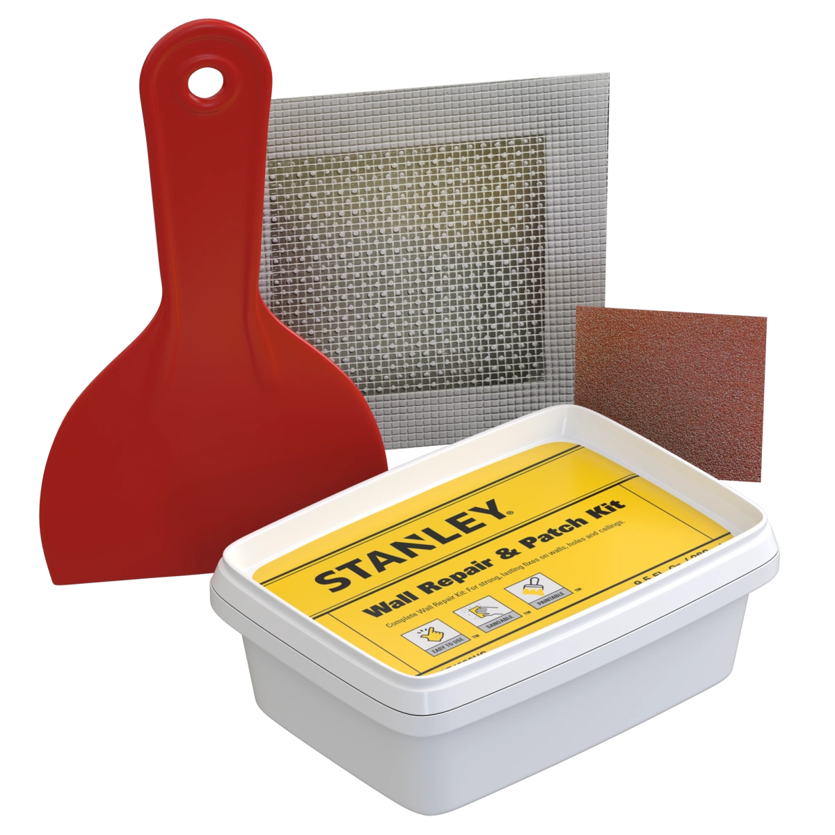 Das STANLEY S 552 PAINTER’S CHOICE WALL REPAIR PATCH KIT ist eine umfassende Lösung für die einfache und effiziente Reparatur von Trockenbau- und Betonoberflächen. Dieses All-in-One-Set enthält eine gebrauchsfertige Trockenbau-Reparaturmasse, die für ihre hohe Rissfüllkraft bekannt ist und sich somit ideal zur Behebung kleinerer bis mittlerer Oberflächenmängel eignet. Das Set enthält außerdem ein flexibles, selbstklebendes, perforiertes Aluminium-Patch, das den Reparaturbereich verstärkt und so für zusätzliche Haltbarkeit und Festigkeit sorgt. Darüber hinaus sind Schleifpapier für ein glattes, professionelles Finish sowie ein ergonomischer Kunststoffspachtel enthalten, der eine präzise und einfache Anwendung gewährleistet. Ganz gleich, ob Sie Löcher, Risse oder andere Oberflächenbeschädigungen ausbessern möchten – dieses Set bietet alles, was Sie für eine schnelle und effektive Reparatur benötigen, und liefert dauerhafte Ergebnisse bei minimalem Aufwand. Das STANLEY® S 552 eignet sich perfekt sowohl für Heimwerker als auch für Profis und sorgt für eine nahtlose Reparatur von Wänden und Decken in jedem Innenraum.