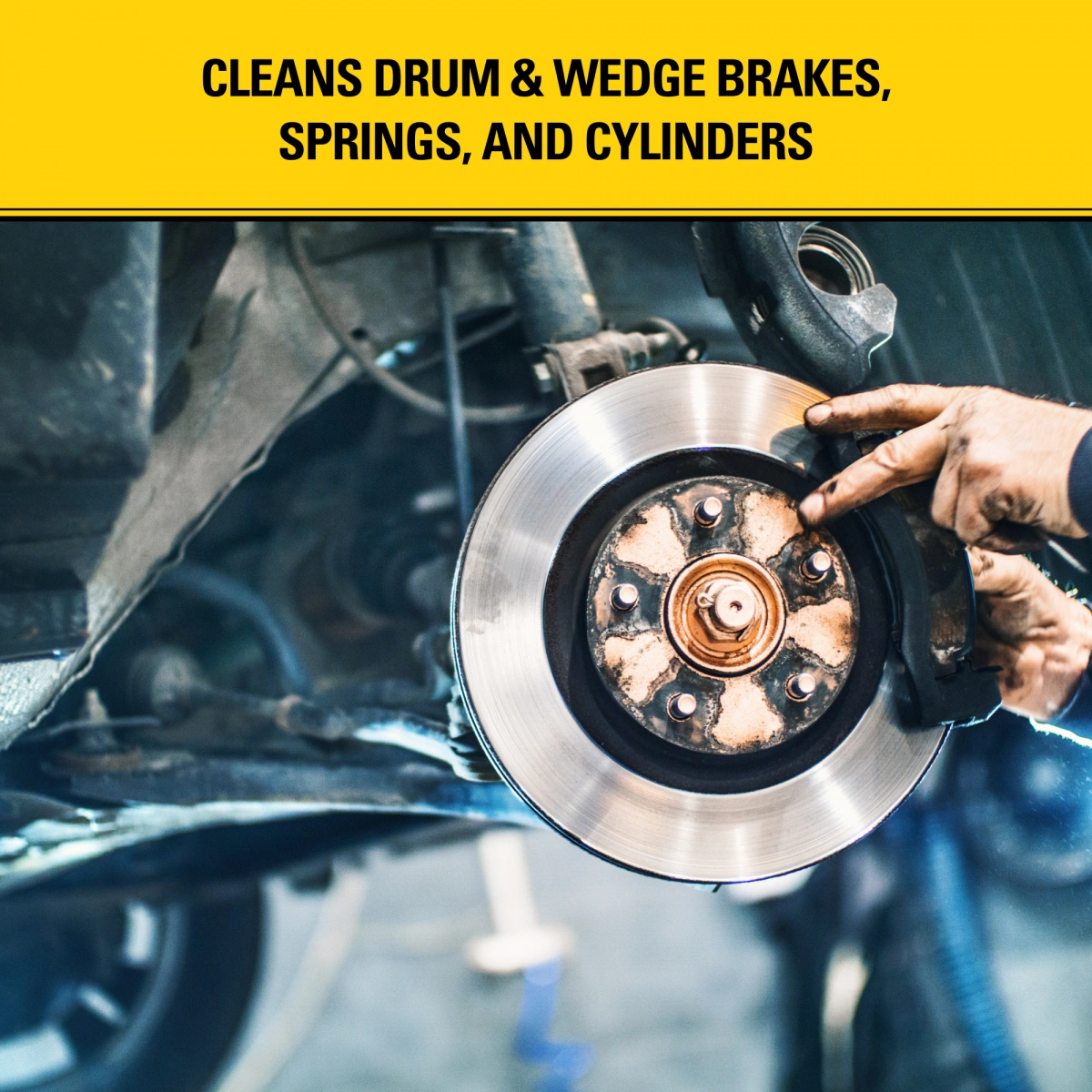 • Ideal zum Reinigen und Entfetten von: Bremsbelägen, Bremstrommeln, Bremssätteln, Bremsbacken, Bremsscheiben, Keilbremsen, Federn, Kupplungsscheiben, Scheibenbremsbelägen und Zylindern.