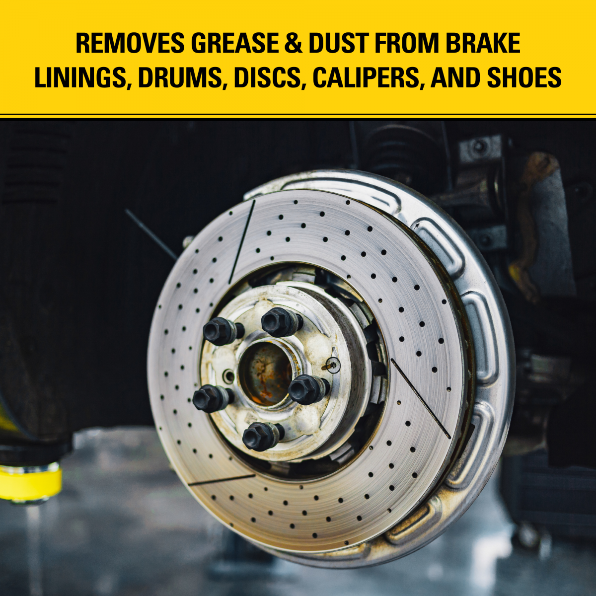 • Perfect for cleaning and degreasing of; Brake linings, brake drums, brake calipers, brake shoes, discs, wedge brakes, springs, clutch discs, disc brake pads, cylinders.